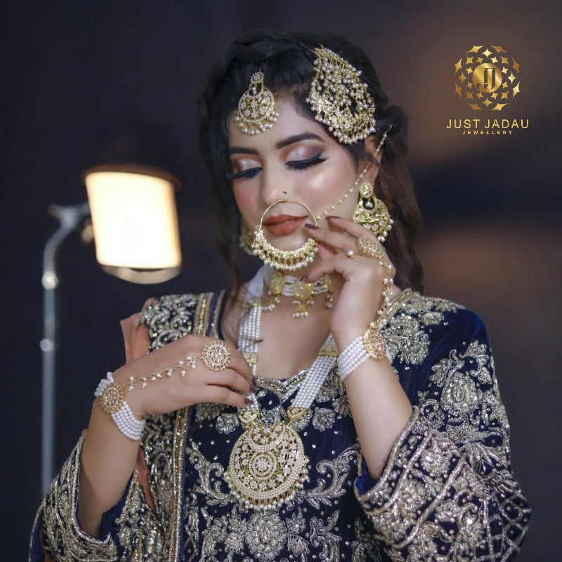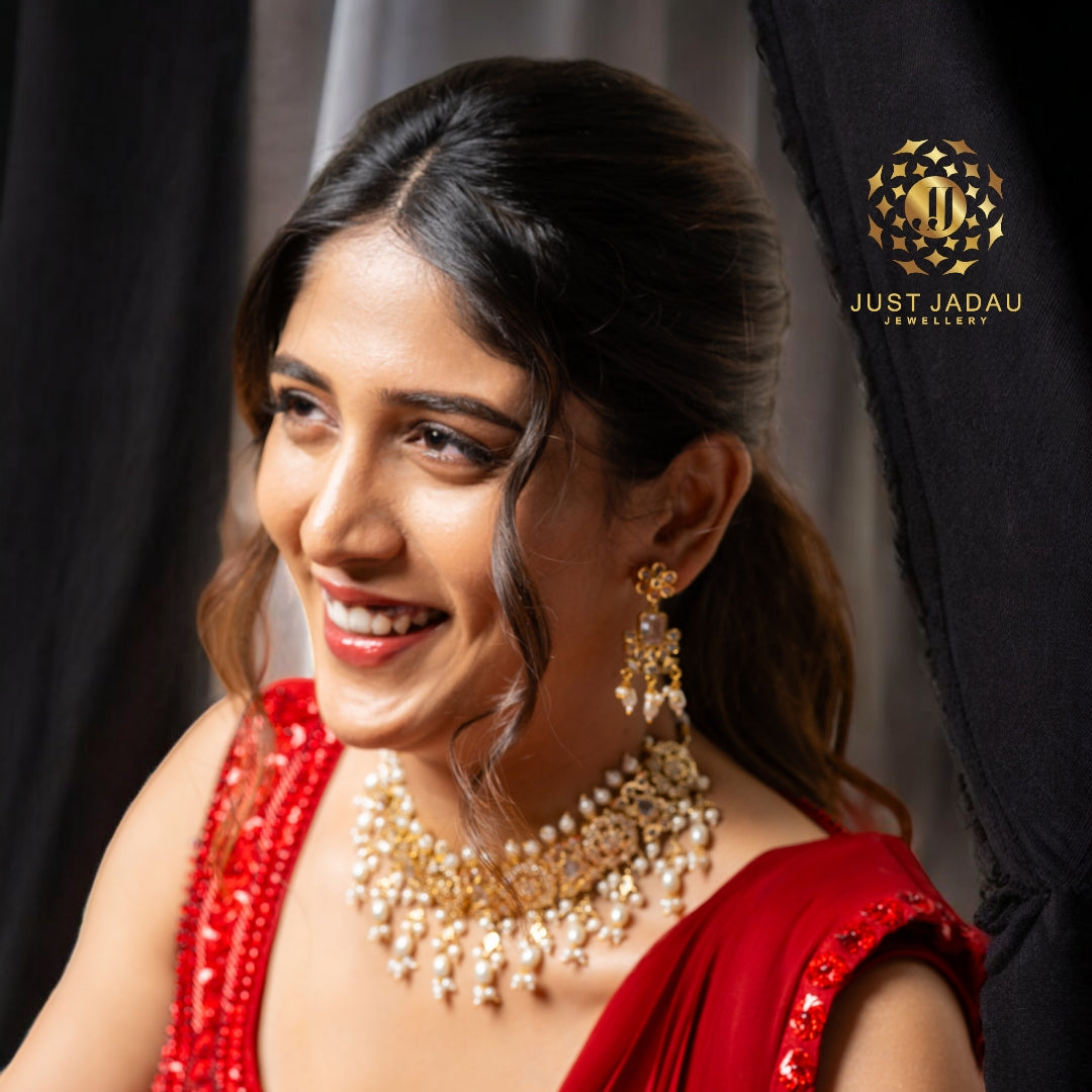 Minha Chokar in Real Emerald and antique nude pink Real Pearls