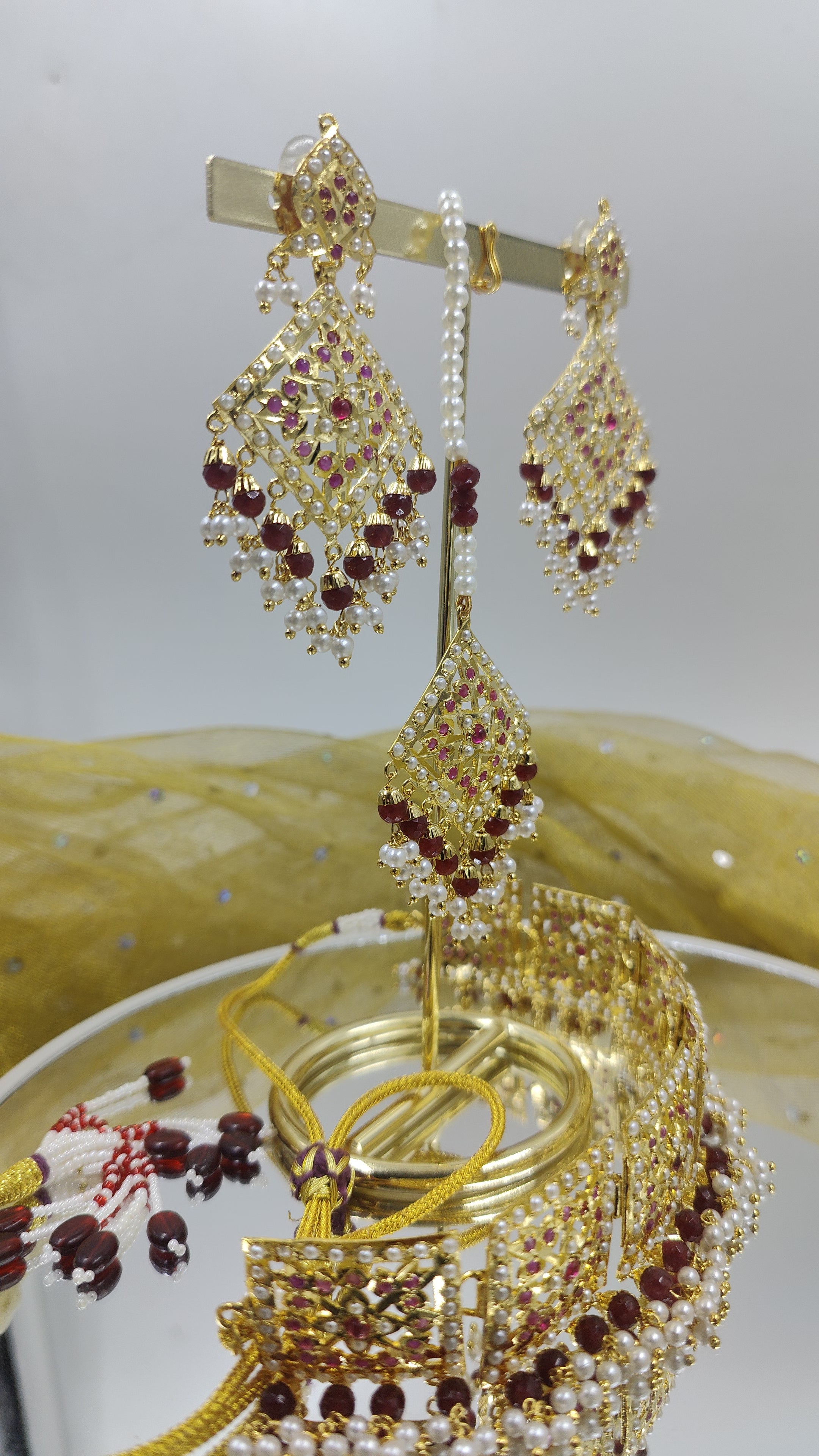 Maintenance To maintain the beauty of your Shezan Bridal Set, avoid exposing it to water, perfume, or harsh chemicals. Store it in a dry place, preferably in a jewelry box or pouch, to prevent scratches. Regularly clean the necklace with a soft cloth to keep it shining and free from tarnish.